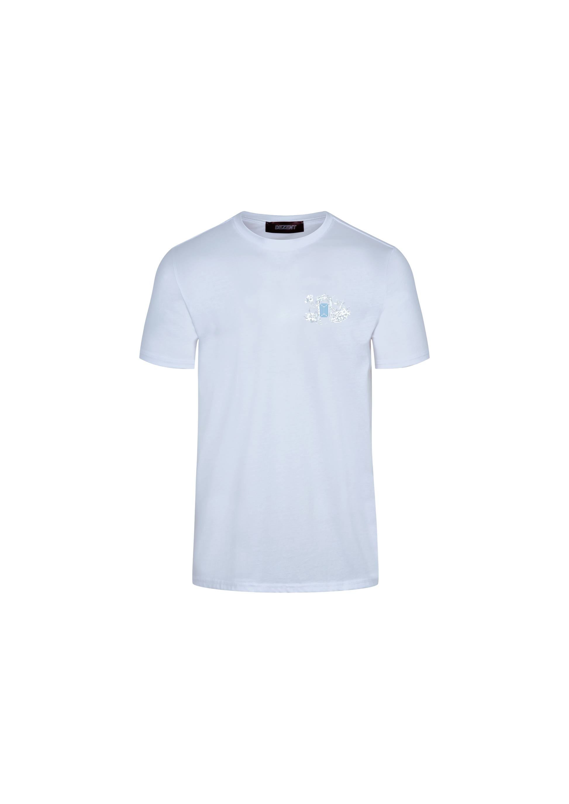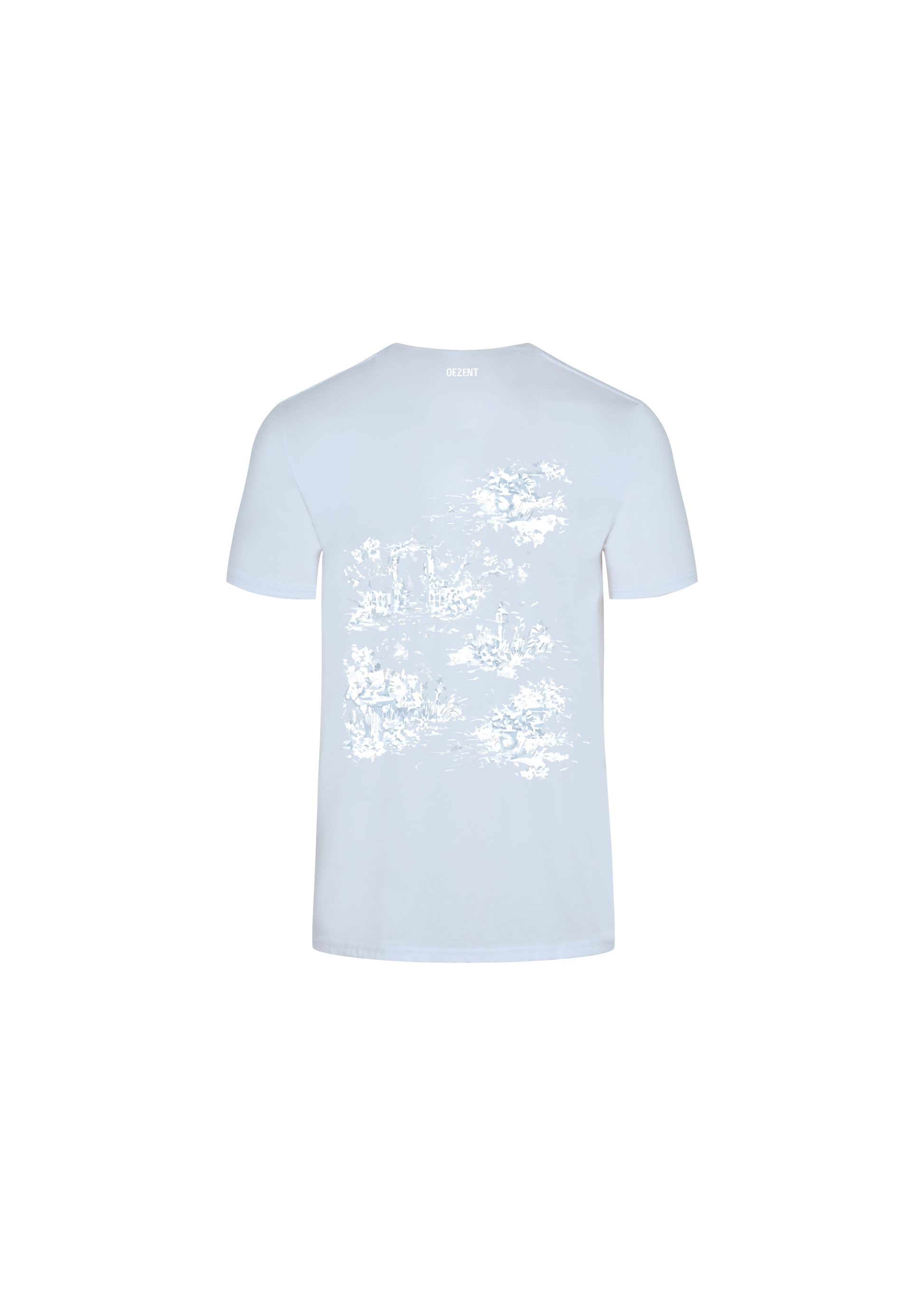 Blue ice printed t-shirt features the DEZENT artwork. A walk in the meadow near the holiday home in the French provinces. For the exclusive SUMMER capsule focused on bright and modern colours inspired by travel. It’s a classic short-sleeved crew neck and has been designed for a relaxed fit